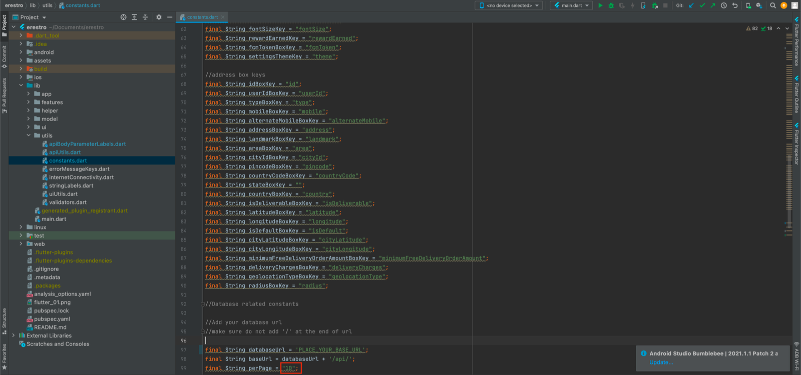 - You can change or add api url and parameter from lib > utils > constants.dart, for api url and apiBodyParameterLabels.dart for api parameter. here all list of api and api paramater is listed that is used in app.