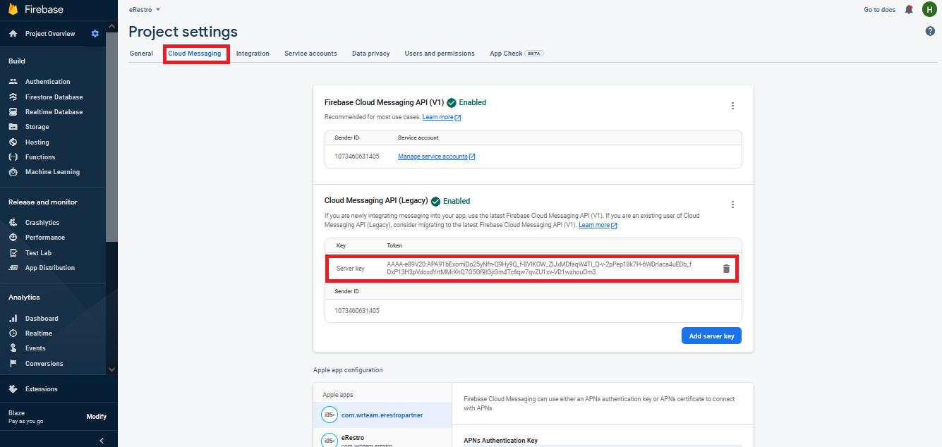 - after that below given screen will appear, now click on download google-services.json.after that open the file and copy content of file and replace in android > app > google-service.son.