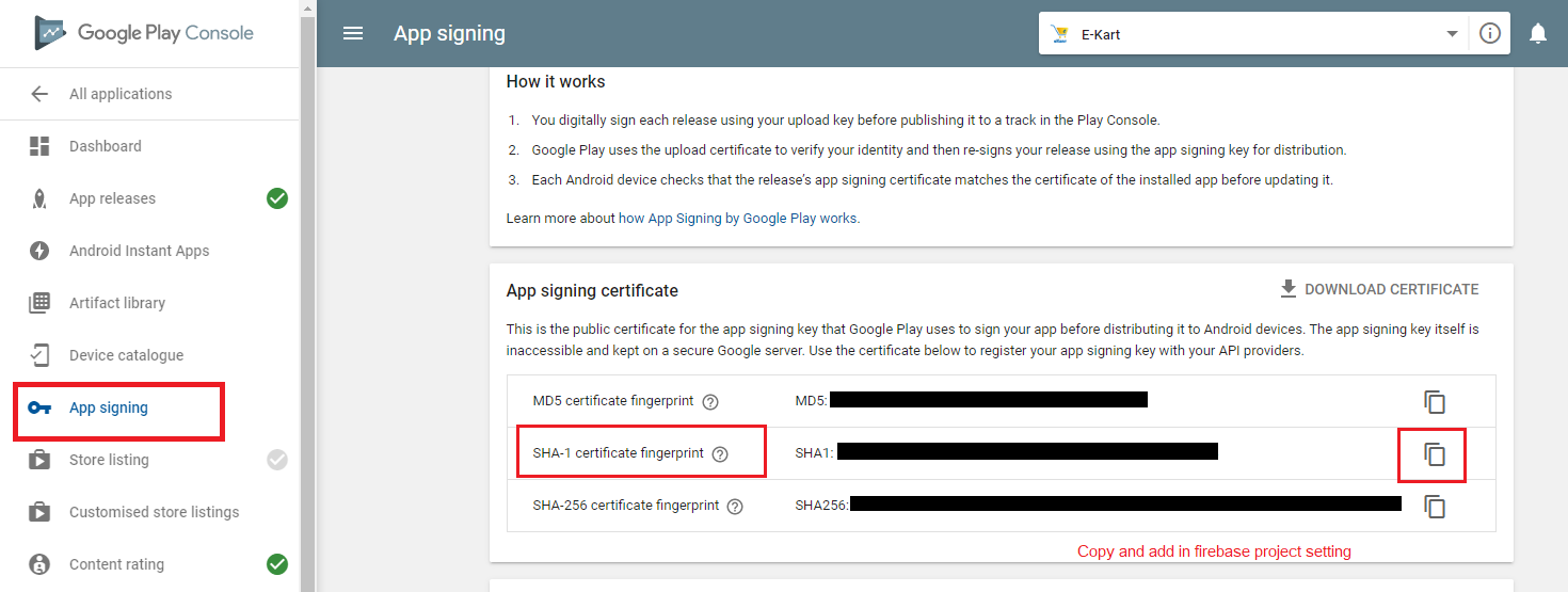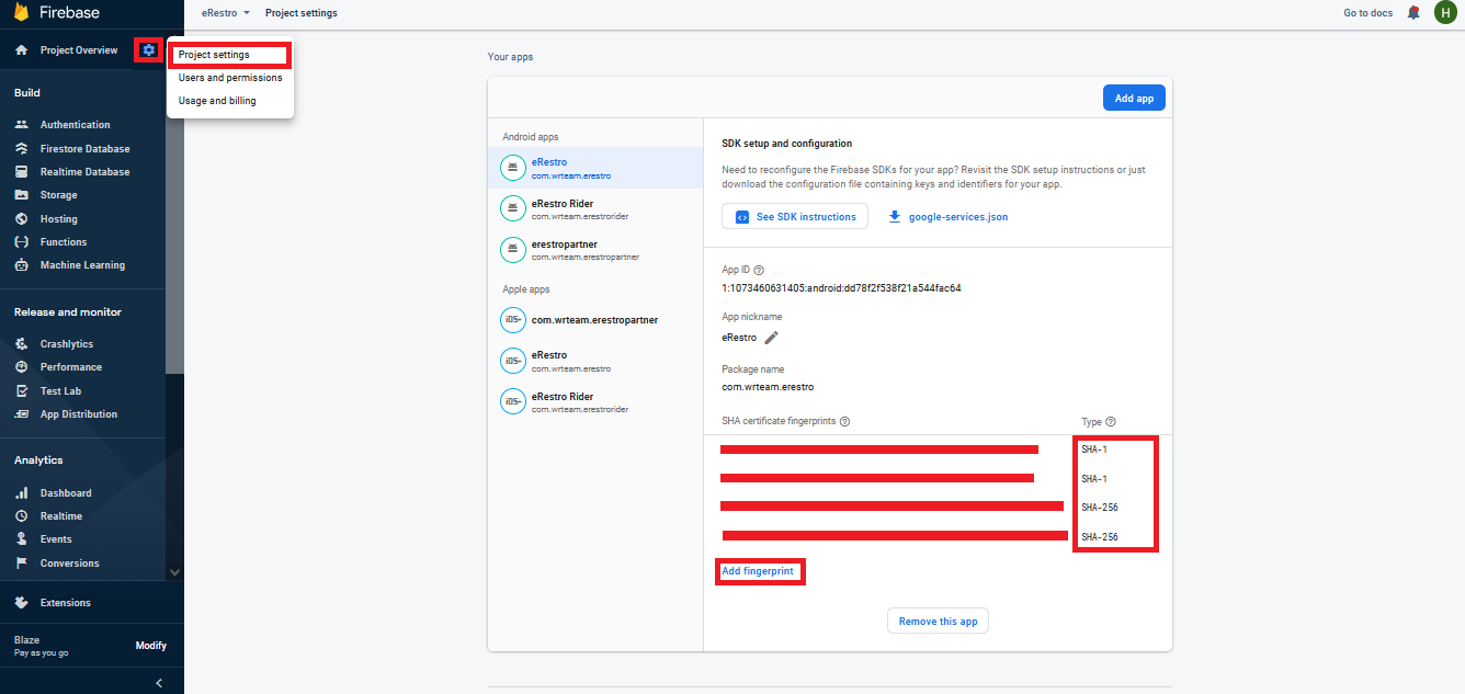- Now, we have to add sha1 and sha256 key in firebase, for that perform below given step for that you can do one of the below method