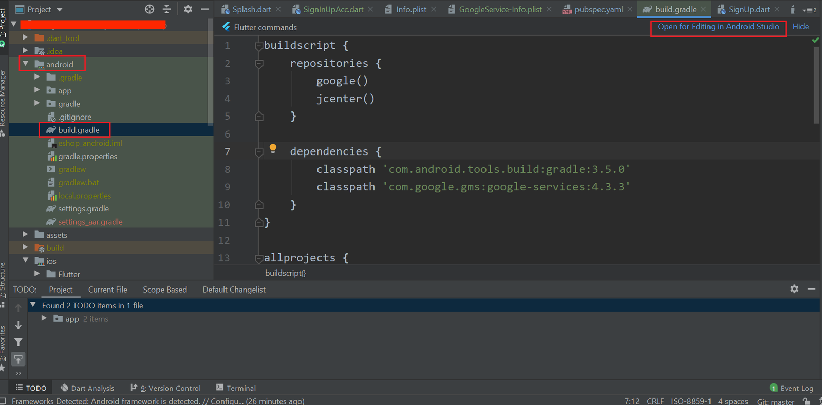 - Go to file > open > then choose your downloaded project location then your project will open.and if you see upar right part 'enable dart support' then click that and go to pubspec.yaml file and in uper right part click pub get or package get and then press run button.
