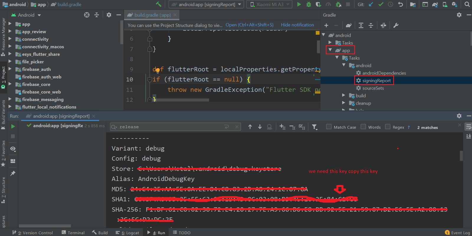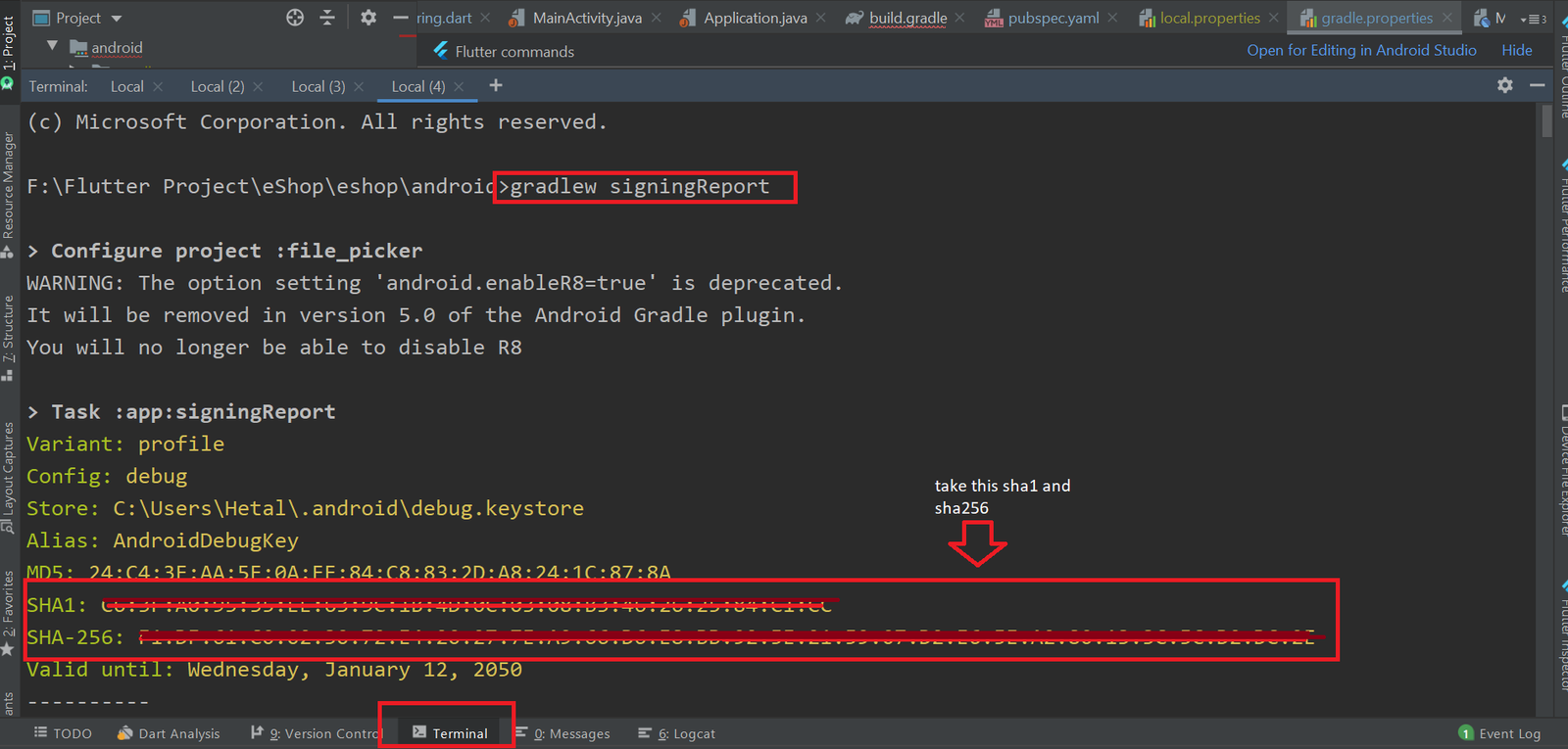 - Go to the terminal view and paste- gradlew signingReport as shown in below